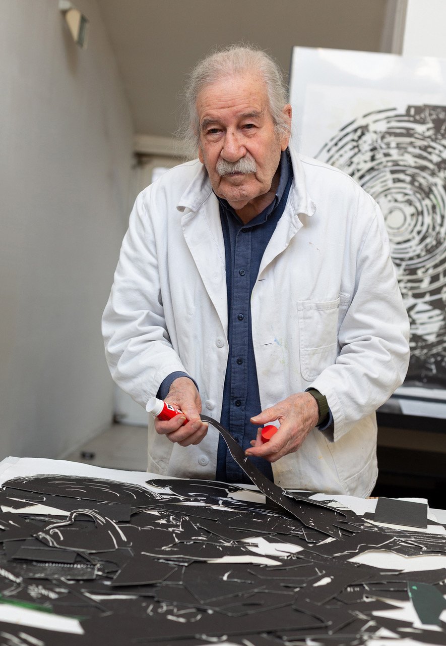 Trotz seiner schweren und fortschreitenden Augenkrankheit konnte der Künstler aus den kontrastreichen Holzschnittfragmenten und Bildschnipseln im Spannungsfeld zwischen Collage und Decollage eine Fülle neuer Bildformen entwickeln. Da der Künstler beim Zusammenkleben der Collagen wegen seiner Sehschwäche Details nicht mehr wahrnehmen kann, ist "präzise Ungenauigkeit“ ein Merkmal seiner Collagen.