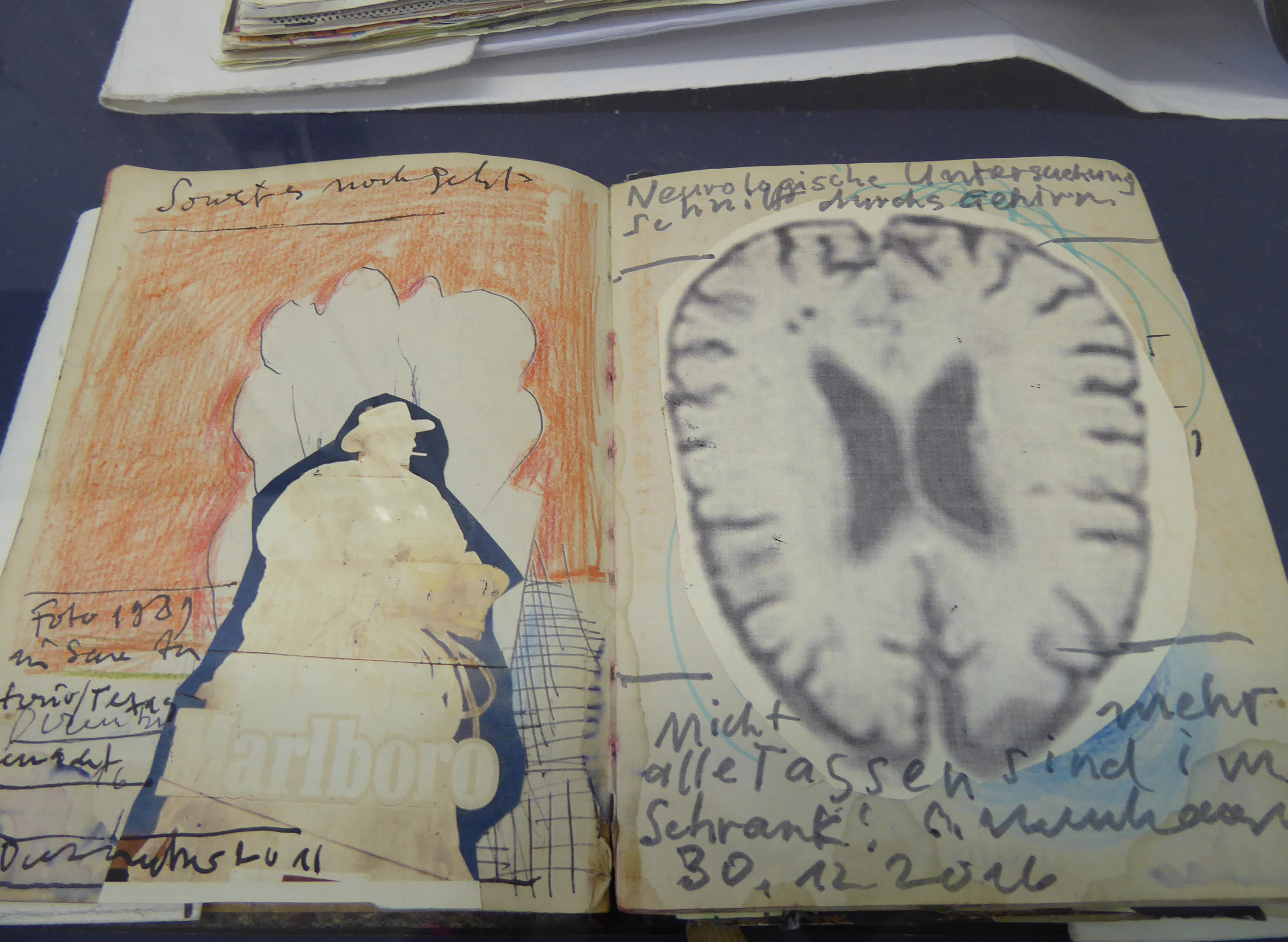 Neben den Collagen wird eine Auswahl seiner „Bücher“ zu sehen sein. - „Vielseitige Mischungen aus Zeichnung, Foto, Collage, Text und Malerei“. Die eigene Befindlichkeit, politische Ereignisse, Erinnerungen und die Planung künstlerischer Projekte, all das wird miteinander verbunden. Die insgesamt 80 sehr unterschiedlichen Zeichenbücher, aber auch Fotoalben, alte Kontobücher und Poesiealben vom Flohmarkt, sind so etwas wie Neuenhausens visuelle Tagebücher. Sie sind über Jahrzehnte entstanden.